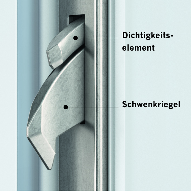 Leichtgängige, massive, mechanische 3-fach Schwenkriegelschlösser mit Hinterkrallung für mehr Dichtigkeit und zusätzliche Sicherheit.